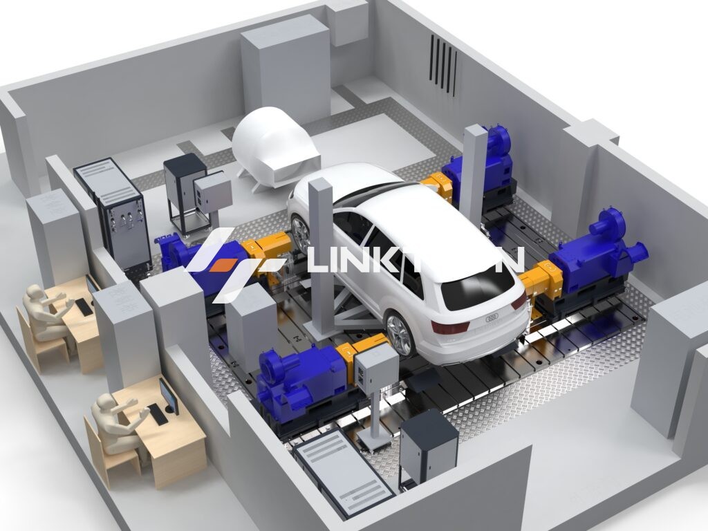 This flexible test system can accommodate both four-wheel-drive and two-wheel-drive vehicle tests and can be divided into two separate powertrain test benches. The axle coupling dynamometer uses low-inertia motors and real-time Ethernet communication control, providing high dynamic response speed for dynamic alternating load condition tests.