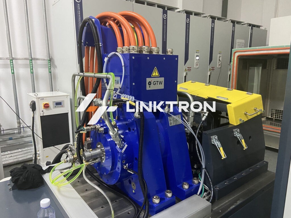 Utilizing a GTW high-speed motor with a maximum speed of 25,000 RPM and a rated torque of 520 Nm, this bench is equipped with a temperature control system, battery simulator, power analyzer, and environmental chamber. It supports the development and testing of electric drive motors, including efficiency tests, temperature rise tests, dynamic durability tests, locked-rotor tests, speed-torque characteristic tests, operating voltage range tests, high-efficiency working area tests, standard condition tests, and custom cycle condition tests.